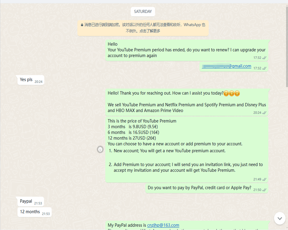YouTube premium 6 months 17USD